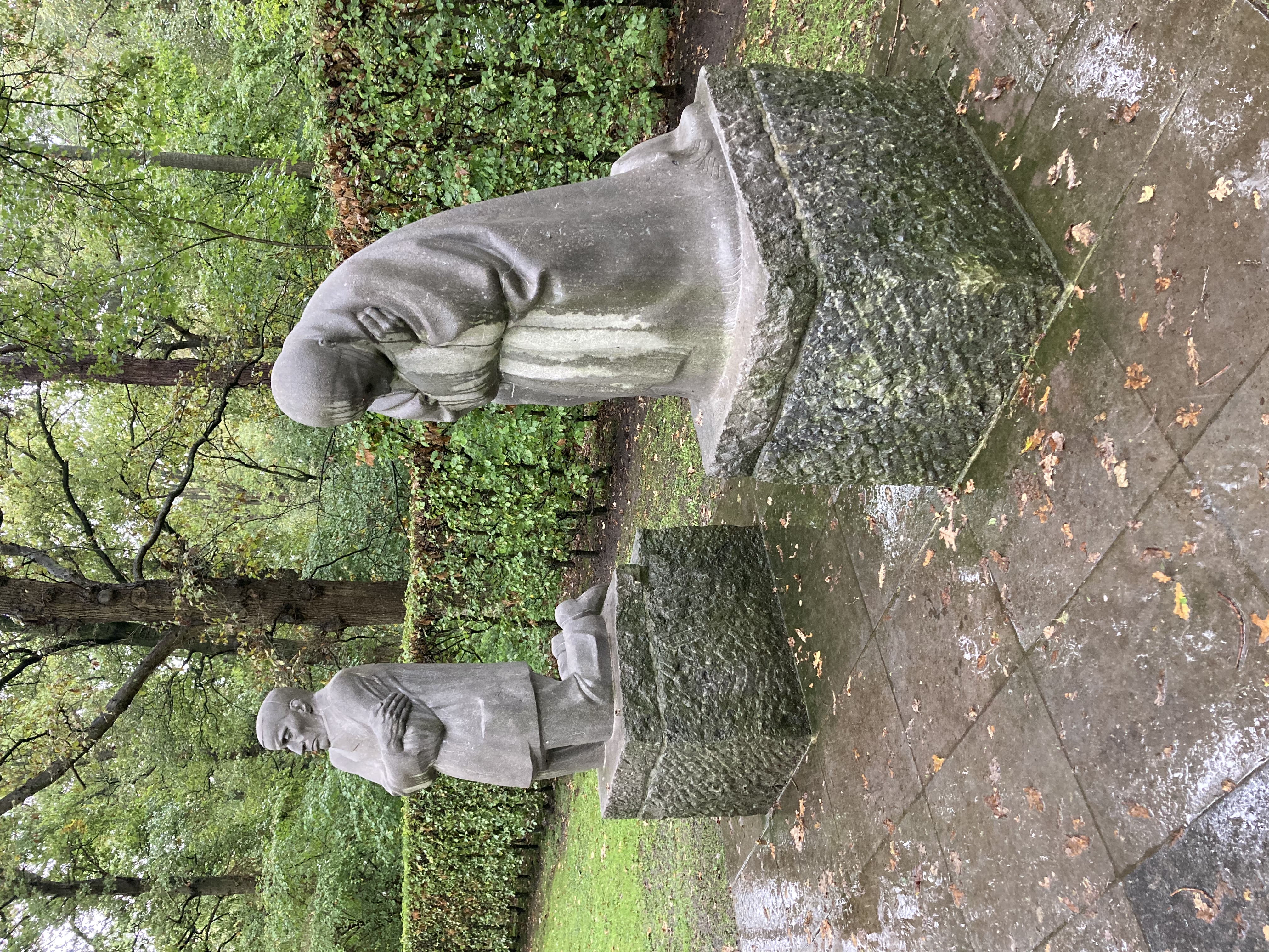 Außerdem begegnet er dort dem "Trauernden Elternpaar" von Käthe Kollwitz, deren Sohn Peter am 23. Oktober 1914 hier in der Nähe gefallen ist.